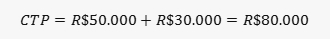 Para calcular o custo total de produção (CTP), somamos os custos variáveis (CV) e os custos fixos (CF):